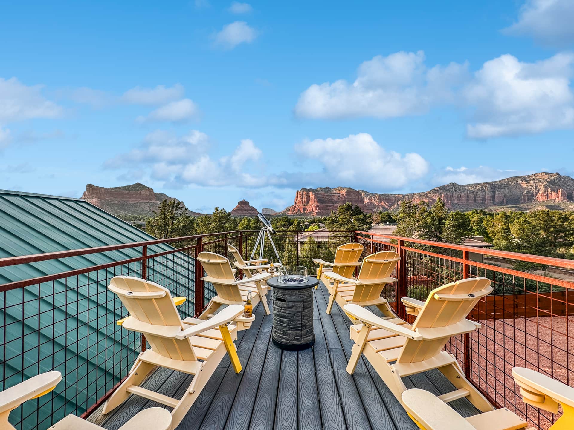 For breathtaking views, head up to our Red Rock Sky Deck, where you can stargaze by the fire, sip your morning coffee while the sun rises over the mountains, or unwind with a glass of wine while watching the sunset over Bell Rock, Cathedral Rock, and Courthouse Butte.