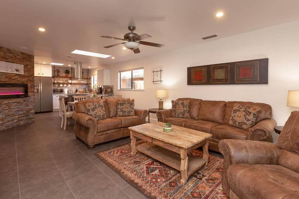 Uptown House "Prime Uptown Location" walk to shops, tours, eateries and trails. Relaxing hot tub, a large shared back- yard, and a full well-stocked kitchen, making it the perfect place for your whole group. House is 1100 square feet with Large window to let in plenty of wonderful natural light, chic decor creates a beautiful getaway that reflects the iconic Red Rock Mountains.Â